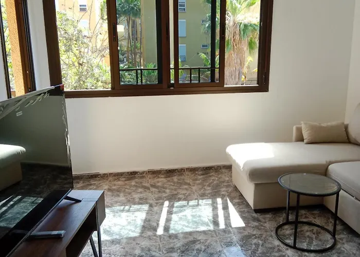 Si te alojas en este apartamento de 92 m², Los cristianos Guincho, podrás relajarte en su terraza. El apartamento se encuentra a poco más de 25 minutos a pie del parque Las Águilas-Jungle Park.